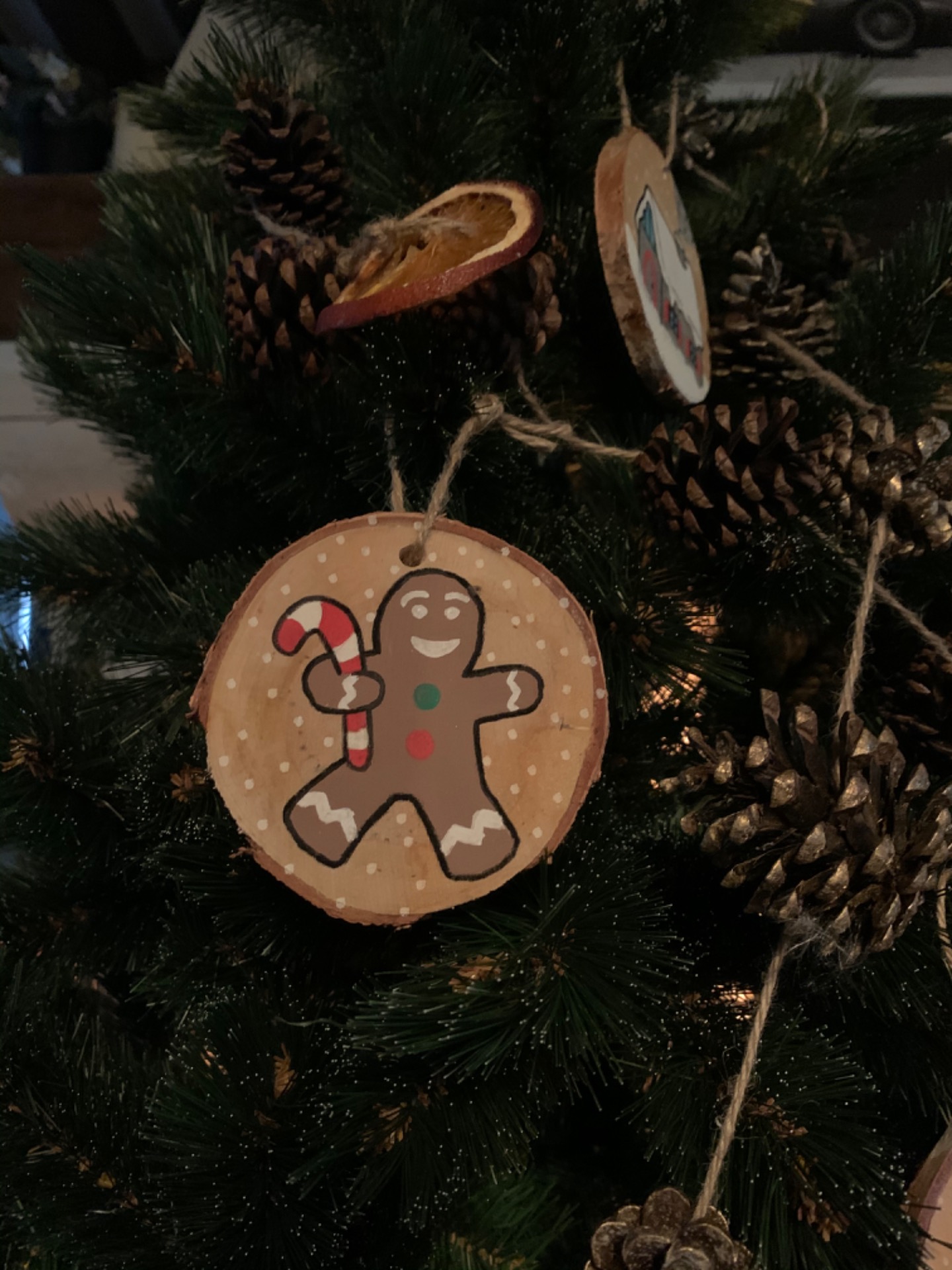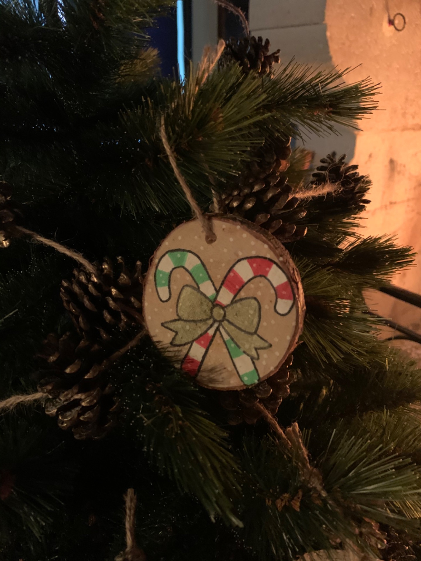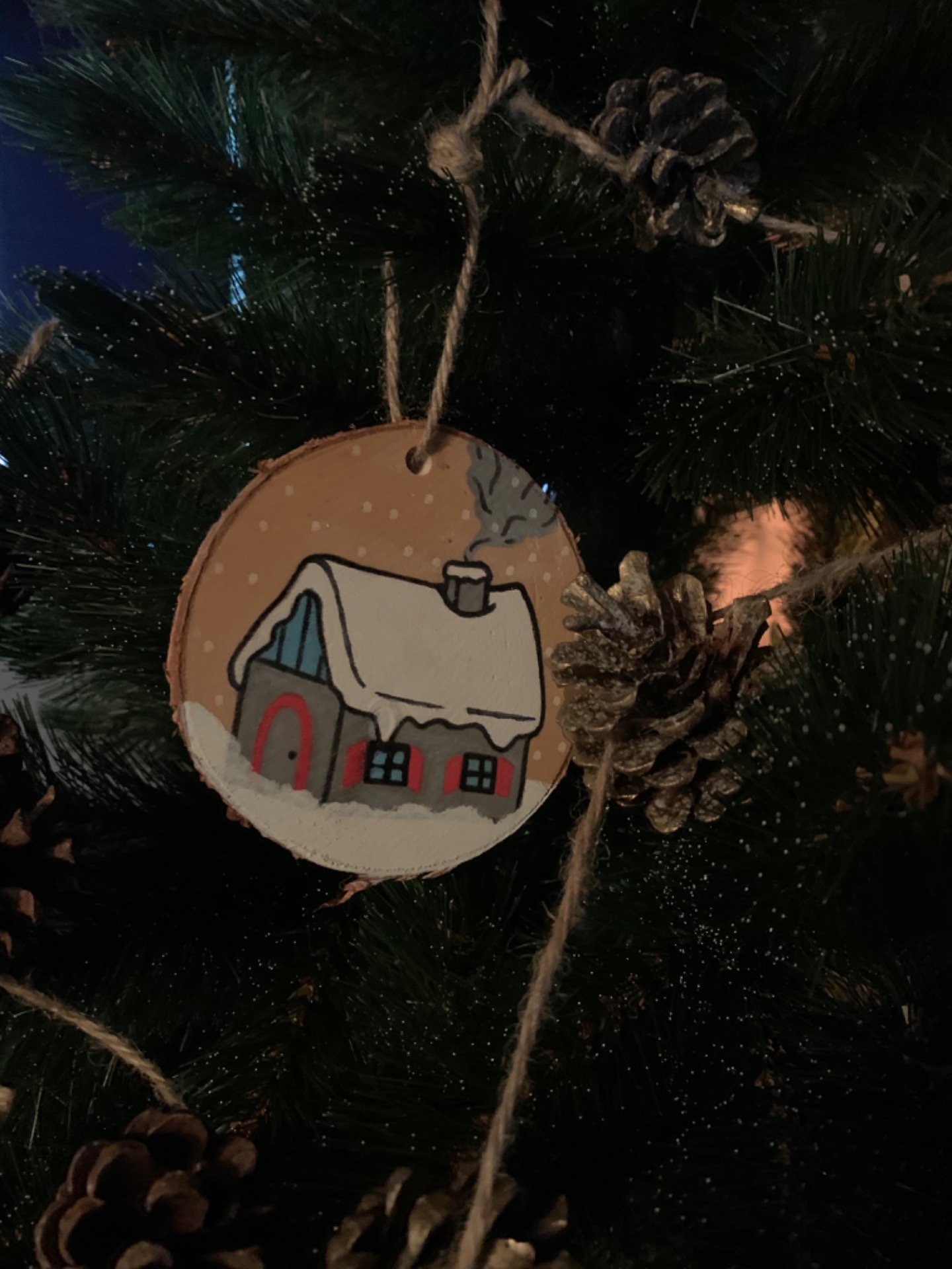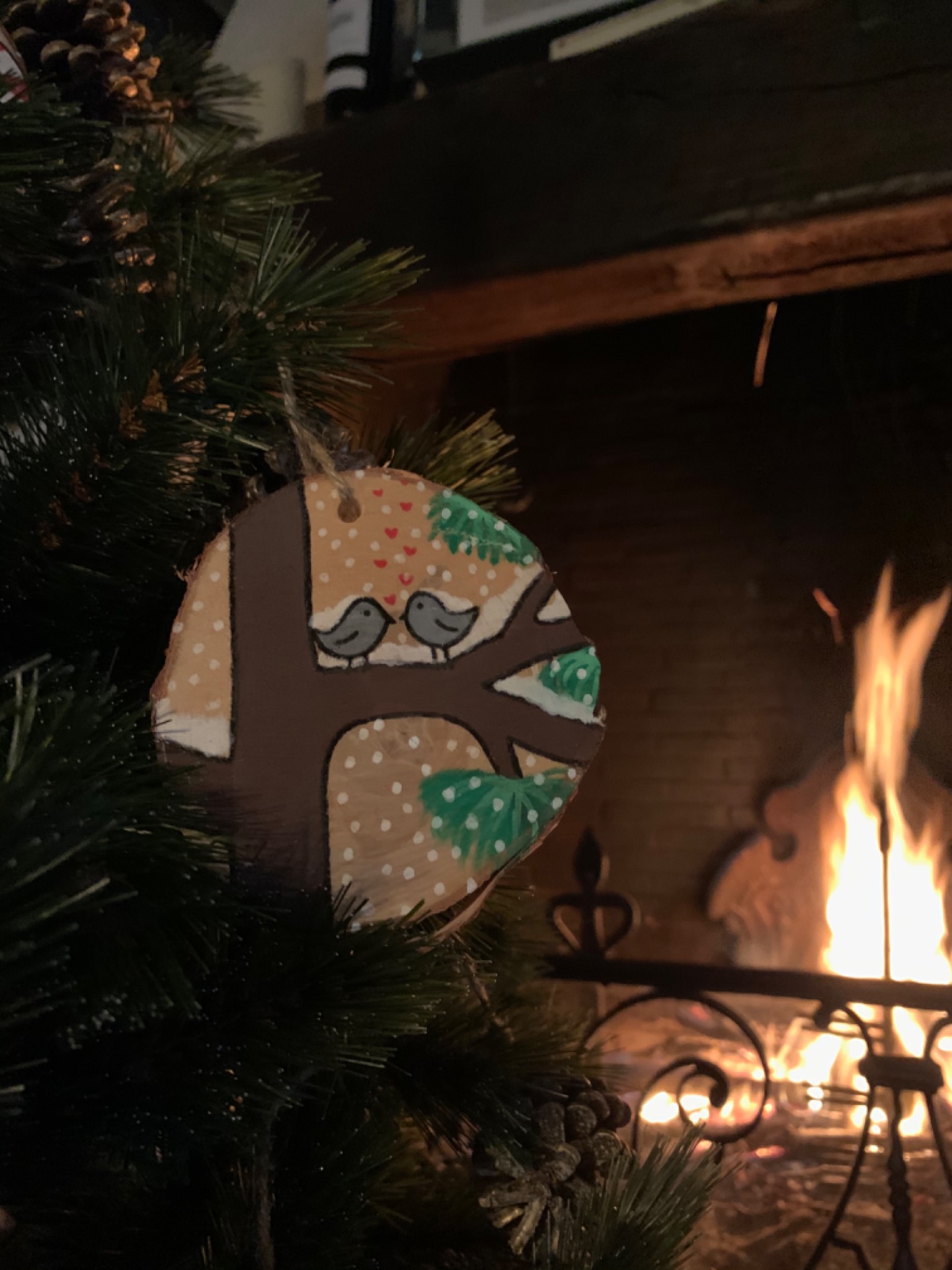 Rondins de bois à suspendre dans le sapin avec différents motifs peints à la main.Pour tout achat (sur la plateforme Etsy) merci de nous indiquer lequel vous désirez.